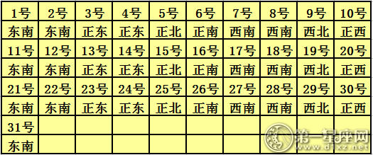 2018年9月每日福神方位
